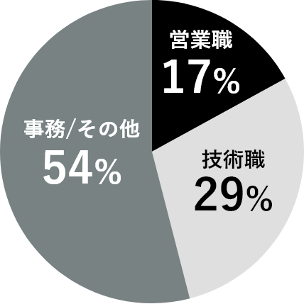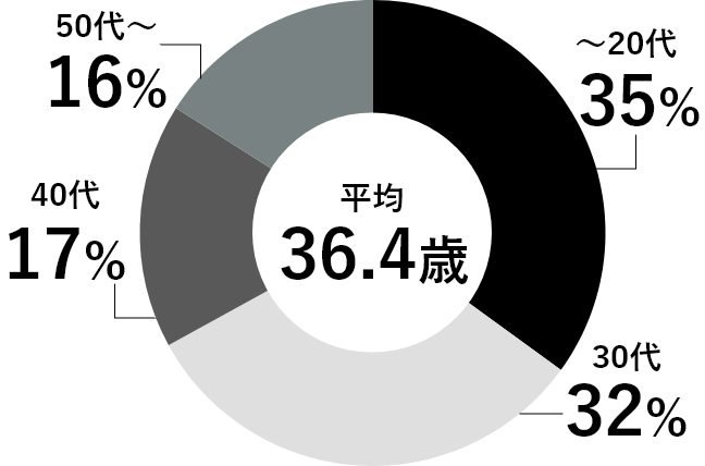 平均年齢は約36.4歳と、20代の勢いがある社員も多い中、キャリアを積んだ30代の社員も多く在籍しています。年齢に関係なく積極的に提案し、常にチャレンジをしながら成長を続けています。