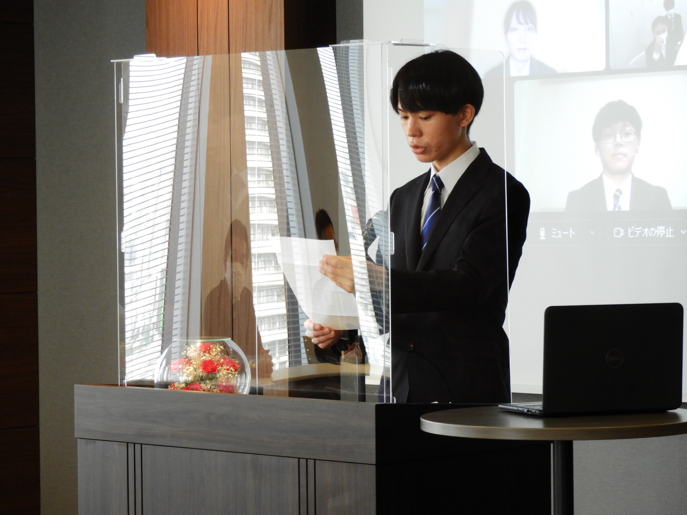 内定式の開始直後は少し緊張した面持ちでしたが、