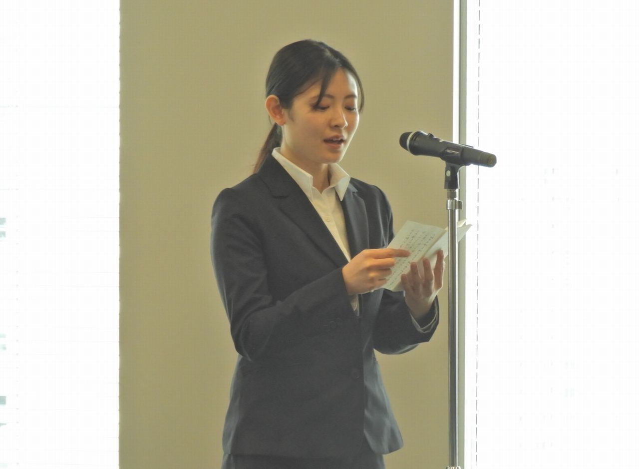 入社式では、新入社員を代表し、入社に向けての決意を述べていただきました。