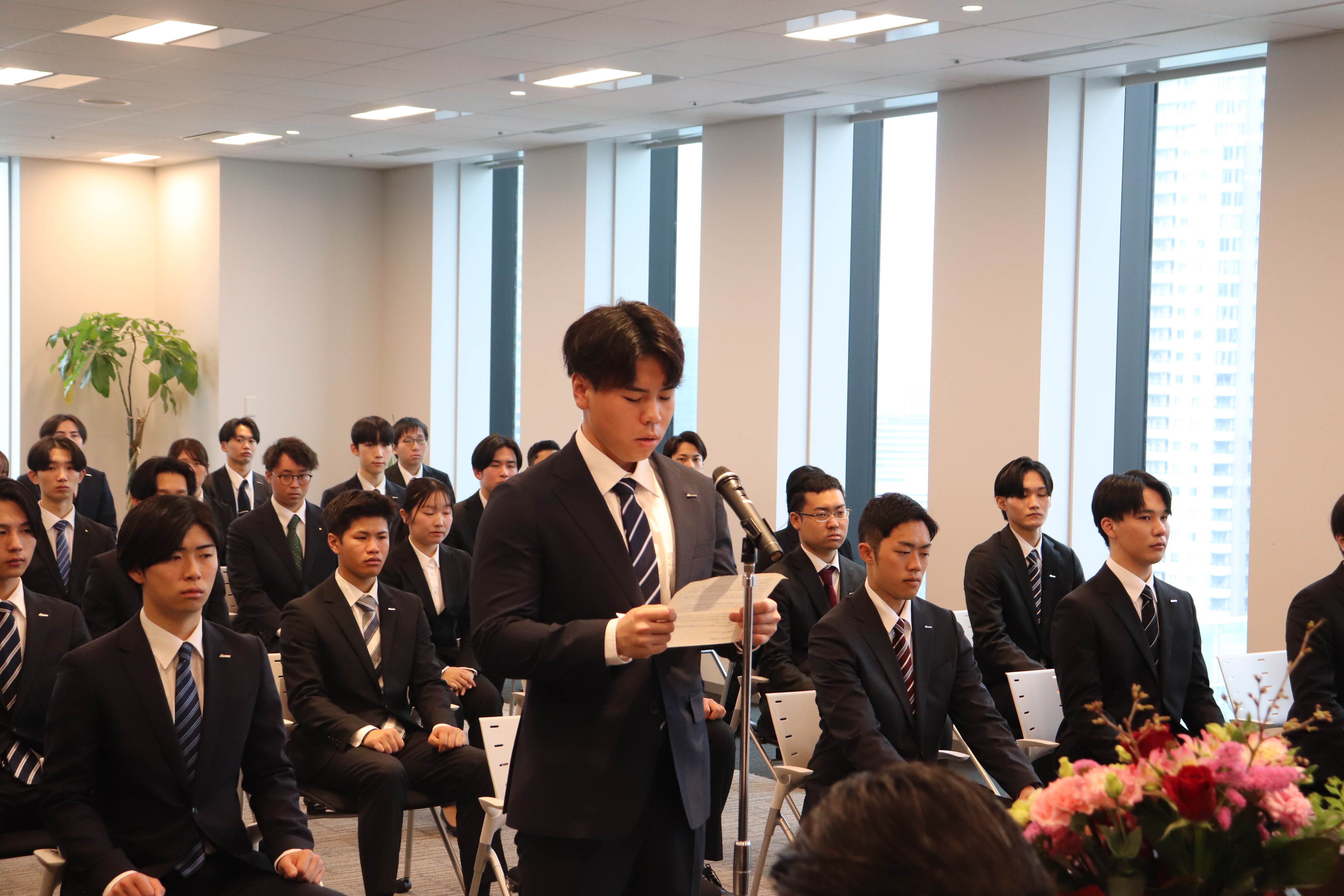 新入社員を代表して、入社に向けての決意を述べていただきました。