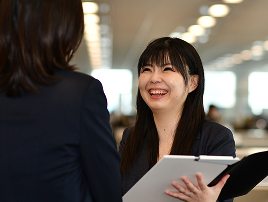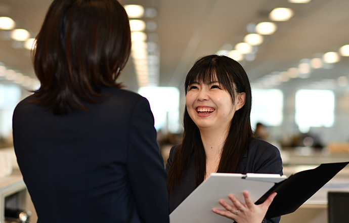、融資や契約書作成をおこなう部署。書類のチェックや正社員のサポート業務がメインでした。その後、同じ部署内の契約書を作成・管理するチームに配置換えがあり、重要事項説明や売買契約書の作成業務を担当しました。派遣社員として1年半勤務したころに、正社員登用のお話をいただきました。将来は法律に関わる仕事をしたいと考えていましたが、正社員登用の面談で「シノケンには弁護士が在籍する法務室もあり将来異動する希望が叶うかもしれない」と説明してもらったこともあり、自分の夢を叶えるために段階的にステップアップしていくイメージを持てたことで入社を決意しました。